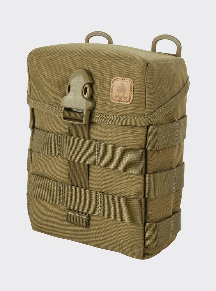 A timeless classic based on a revised British Special Forces design. This large pouch holds survival and bushcraft equipment, water bottles, food rations and similar items. There is a sleeve on the back that will hold a folding saw/knife/axe. MOLLE/PALS compatible FEATURES: -Buckle closure -Inner velcro panel, 3 slim inner pockets and dummy cording loop with bottom Velcro limiter -Front & side MOLLE/PALS webbing -Built in sheath for Knife/axe/saw at the rear of the pouch -DUTY BELT/PALS/MOLLE compatible -Co-designed by Survivaltech.pl