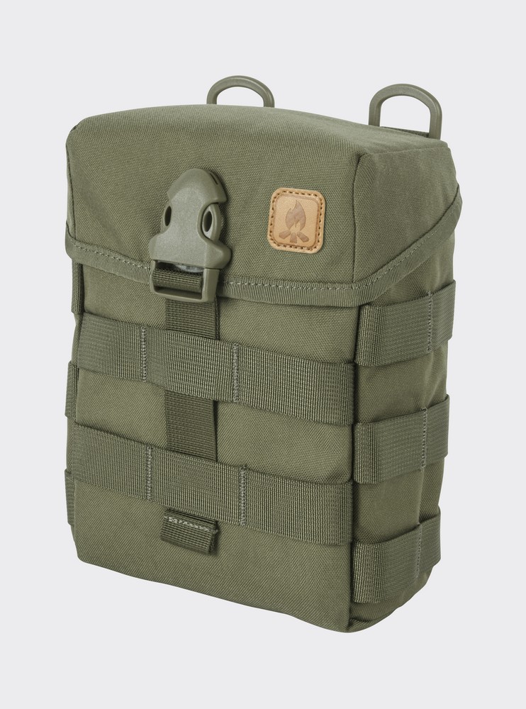 A timeless classic based on a revised British Special Forces design. This large pouch holds survival and bushcraft equipment, water bottles, food rations and similar items. There is a sleeve on the back that will hold a folding saw/knife/axe. MOLLE/PALS compatible FEATURES: -Buckle closure -Inner velcro panel, 3 slim inner pockets and dummy cording loop with bottom Velcro limiter -Front & side MOLLE/PALS webbing -Built in sheath for Knife/axe/saw at the rear of the pouch -DUTY BELT/PALS/MOLLE compatible -Co-designed by Survivaltech.pl