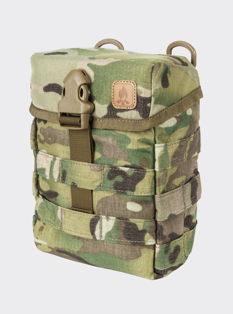A timeless classic based on a revised British Special Forces design. This large pouch holds survival and bushcraft equipment, water bottles, food rations and similar items. There is a sleeve on the back that will hold a folding saw/knife/axe. MOLLE/PALS compatible FEATURES: -Buckle closure -Inner velcro panel, 3 slim inner pockets and dummy cording loop with bottom Velcro limiter -Front & side MOLLE/PALS webbing -Built in sheath for Knife/axe/saw at the rear of the pouch -DUTY BELT/PALS/MOLLE compatible -Co-designed by Survivaltech.pl