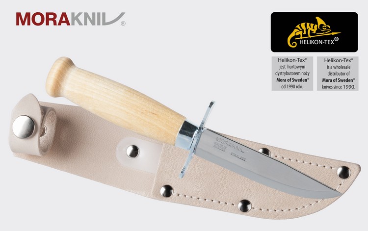 The Scout knife is an outdoor recreation knife with a double finger guard that prevents the fingers sliding forward over the blade. It has a short blade made of Swedish stainless steel and a wooden handle adapted for smaller hands, making it suitable as an entry-level knife, smooth and simple to use. Remember to always watch carefully over children when they are woodcarving. FEATURES: -Blade length: 87 mm -Total knife length: 180 mm -Blade thickness: 2 mm -Blade hardness: 56 – 58 HRC