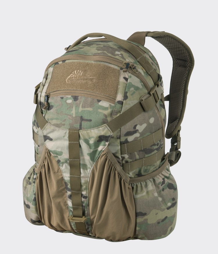 Advanced backpack for any use: from EDC to short hikes, also as a tactical backpack. Quick and easy accessibility of essential items was the focal point of the design work. Main chamber has got a velcro panel to attach inserts compatible with our Versatile Insert System®, an elastic band cuffed pocket and a zippered one. Organizer pocket for small items is situated at the top of the backpack, and is accessible without the need to open the main chamber. Front of the pack has a soft-lined sunshades / electronics pocket, and velcro panels allow to attach additional Versatile Insert System® - compatible inserts. Two open top side pockets carry windshirt or water bottle. The front is covered with a so-called Beaver tail panel, which holds a biking, climbing or tactical helmet. If the backpack is used simply as an EDC item, the flap can be simply rolled and secured, to avoid having to unbuckle it every time to take something out. The backpack is fitted with comfortable, profiled straps, rigid back panel as well as the hip belt FEATURES: -Internal loop-velcro panels for modular inserts -Two YKK®-zippered compartments -Sunglasses pocket -Collapsible, partly elastic Beaver tail flap -Comfortable carrying handle -Concealable hip belt -Anatomic shoulder straps -Comfortable carry system -External organizer pocket -MOLLE/PALS compatible -Integral rain cover -EDC Insert-compatible -Versatile Insert System® compatible -Woojin® buckles -YKK® zippers