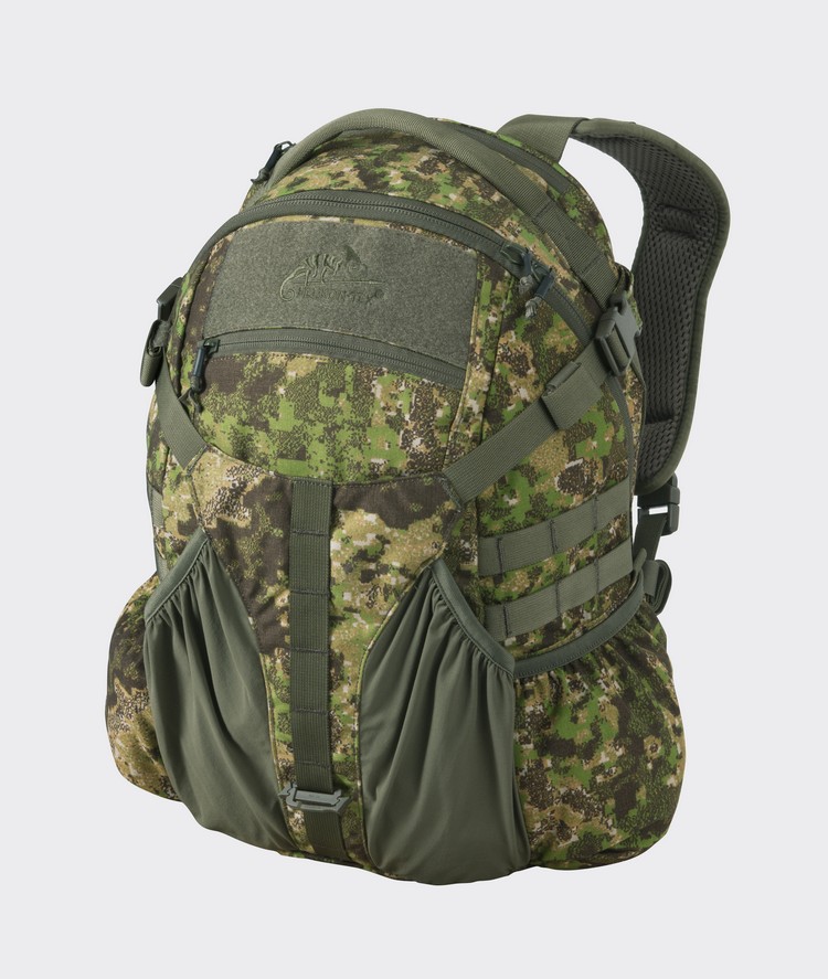 Advanced backpack for any use: from EDC to short hikes, also as a tactical backpack. Quick and easy accessibility of essential items was the focal point of the design work. Main chamber has got a velcro panel to attach inserts compatible with our Versatile Insert System®, an elastic band cuffed pocket and a zippered one. Organizer pocket for small items is situated at the top of the backpack, and is accessible without the need to open the main chamber. Front of the pack has a soft-lined sunshades / electronics pocket, and velcro panels allow to attach additional Versatile Insert System® - compatible inserts. Two open top side pockets carry windshirt or water bottle. The front is covered with a so-called Beaver tail panel, which holds a biking, climbing or tactical helmet. If the backpack is used simply as an EDC item, the flap can be simply rolled and secured, to avoid having to unbuckle it every time to take something out. The backpack is fitted with comfortable, profiled straps, rigid back panel as well as the hip belt. FEATURES: -Internal loop-velcro panels for modular inserts -Two YKK®-zippered compartments -Sunglasses pocket -Collapsible, partly elastic Beaver tail flap -Comfortable carrying handle -Concealable hip belt -Anatomic shoulder straps -Comfortable carry system -External organizer pocket -MOLLE/PALS compatible -Integral rain cover -EDC Insert-compatible -Versatile Insert System compatible -Woojin® buckles -YKK® zippers